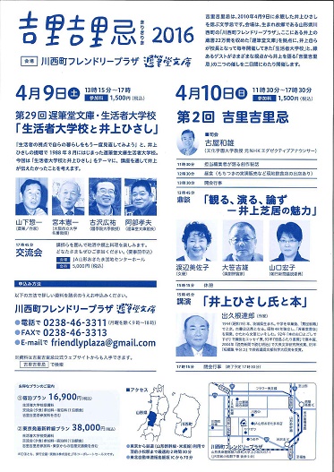 川西町出身の作家・劇作家の井上ひさしさんの命日に合わせて開催されます。
